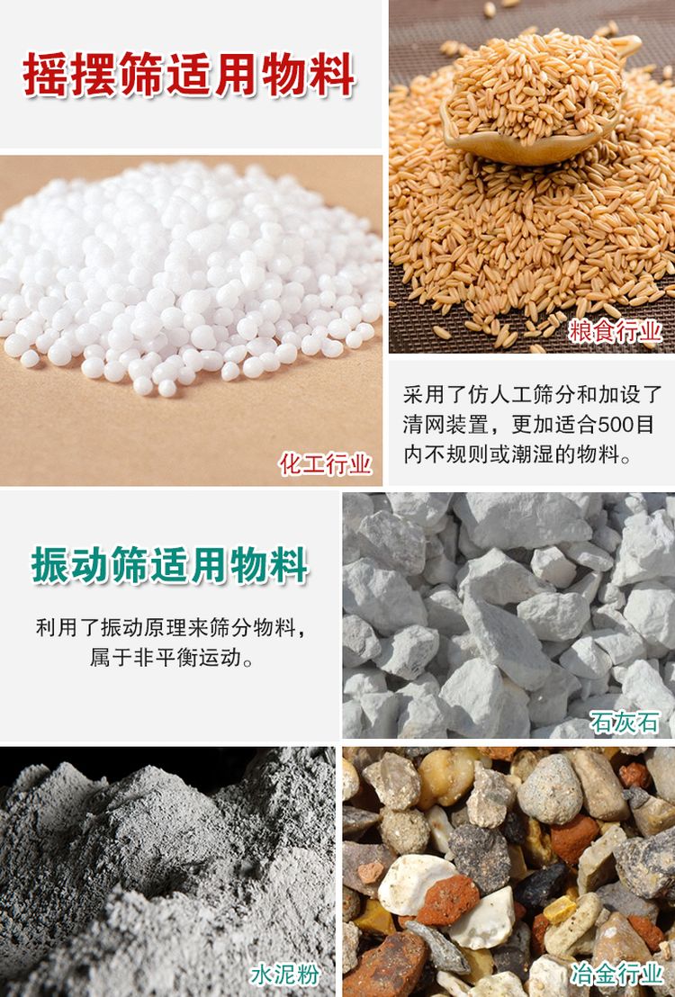搖擺篩由于采用了仿人工篩分和加設(shè)了清網(wǎng)裝置,所以更加適合500目?jī)?nèi)不規(guī)則或潮濕的物料,克服了普通振動(dòng)篩的堵網(wǎng)風(fēng)險(xiǎn),而振動(dòng)篩屬于非平衡破壞暴力運(yùn)動(dòng),利用了振動(dòng)原理來(lái)篩分物料,所以有時(shí)還會(huì)破壞物料,所以對(duì)于一些顆粒狀結(jié)晶焦脆物料,建議使用搖擺篩,其篩分精度可達(dá)95% 以上。