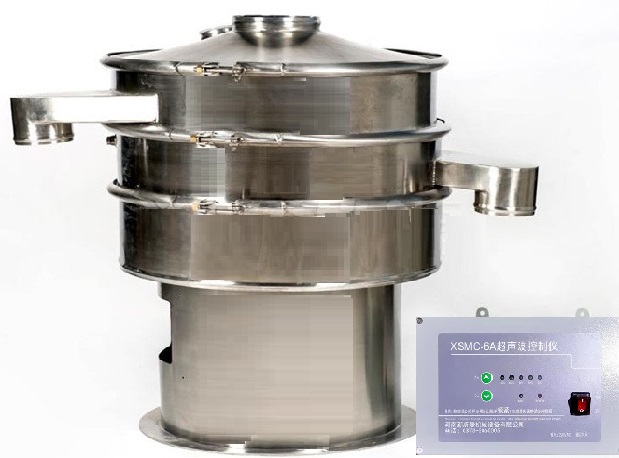 超聲波振動篩是將220V、50Hz或110V、60Hz電能轉化為36KHz的高頻電能,輸入超聲換能器,將其變成36KHz機械振動,產(chǎn)生的功率超聲波使篩網(wǎng)作高頻振動。篩網(wǎng)上的物料在作低頻旋振運動的同時,疊加上超聲振動,既可防止網(wǎng)孔堵塞,又可使篩分機提高產(chǎn)量和質(zhì)量,從而達到快速篩分和清網(wǎng)的目的,使超微細粉篩分成為易事。該系統(tǒng)在傳統(tǒng)的振動篩基礎上在篩網(wǎng)上引入一個低振幅、高頻率的超聲振動波(機械波),以改變超微細分體的篩分性能。特別適合高附加值精細分體的用戶使用。
