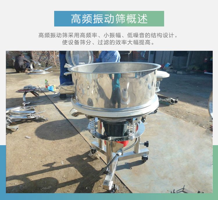 高頻篩也叫高頻振動篩,采用高頻率、小振幅、低噪音的結(jié)構(gòu)設(shè)計(jì),使細(xì)粒物料在篩面上高速振蕩,破壞了漿液的表面張力,增加了物料與篩孔接觸的頻率,使設(shè)備篩分、過濾的效率大幅提高,廣泛應(yīng)用于食品、醫(yī)藥、化工、磨料、陶瓷、礦業(yè)、顏料、冶金、地質(zhì)、國防、電子等行業(yè)的漿料、粉料、顆粒生產(chǎn)的分級、過濾。方便的活動車架在工作場所可以隨意移動,不用進(jìn)行復(fù)雜的設(shè)備安裝,高低可調(diào)、操作簡單、經(jīng)久耐用。
