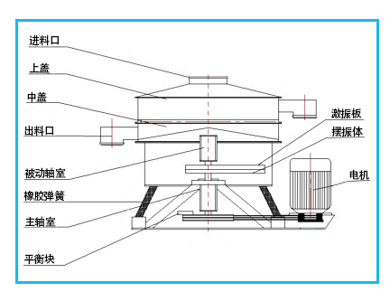 振動電機(jī):是設(shè)備的主要動力來源,通過振動電機(jī)激振力的作用使物料在篩面上運動。