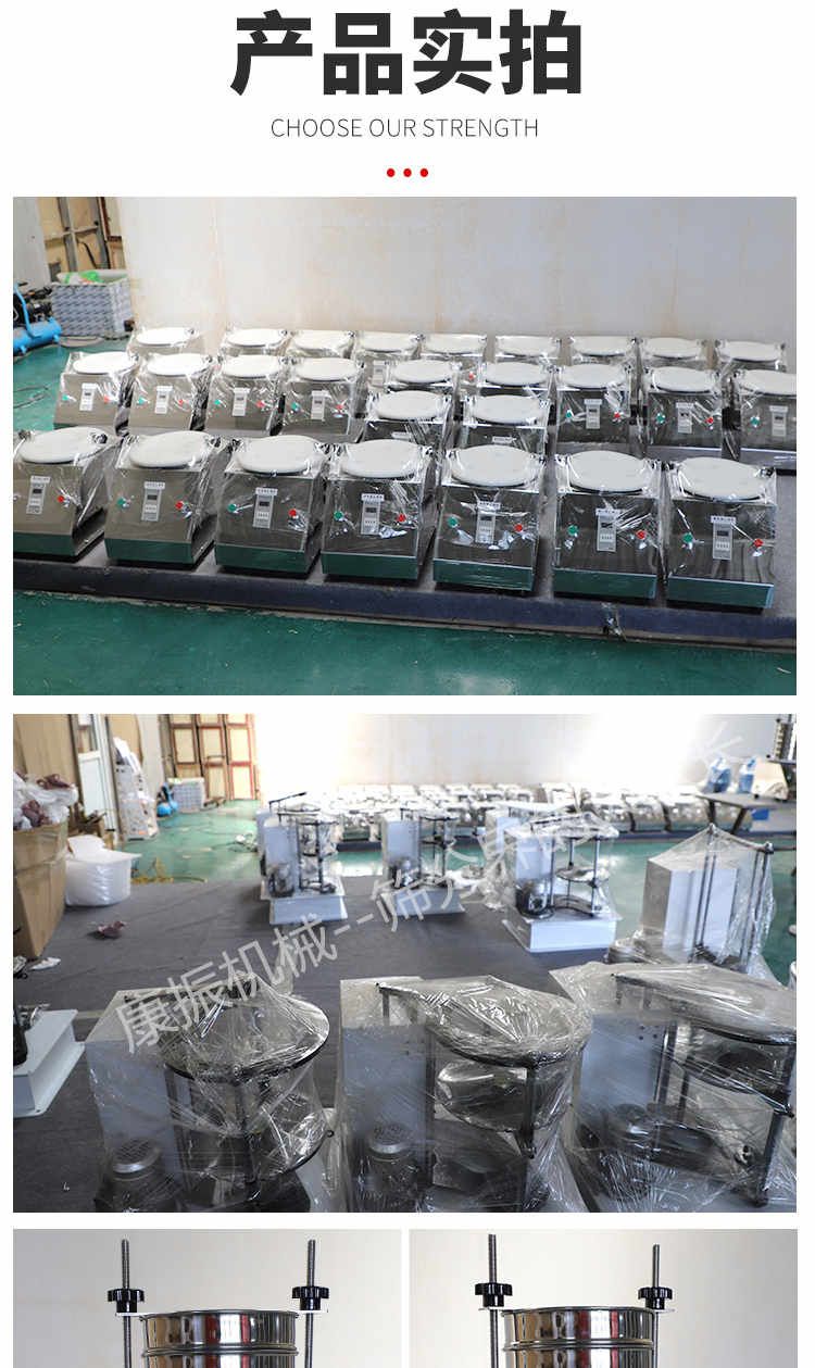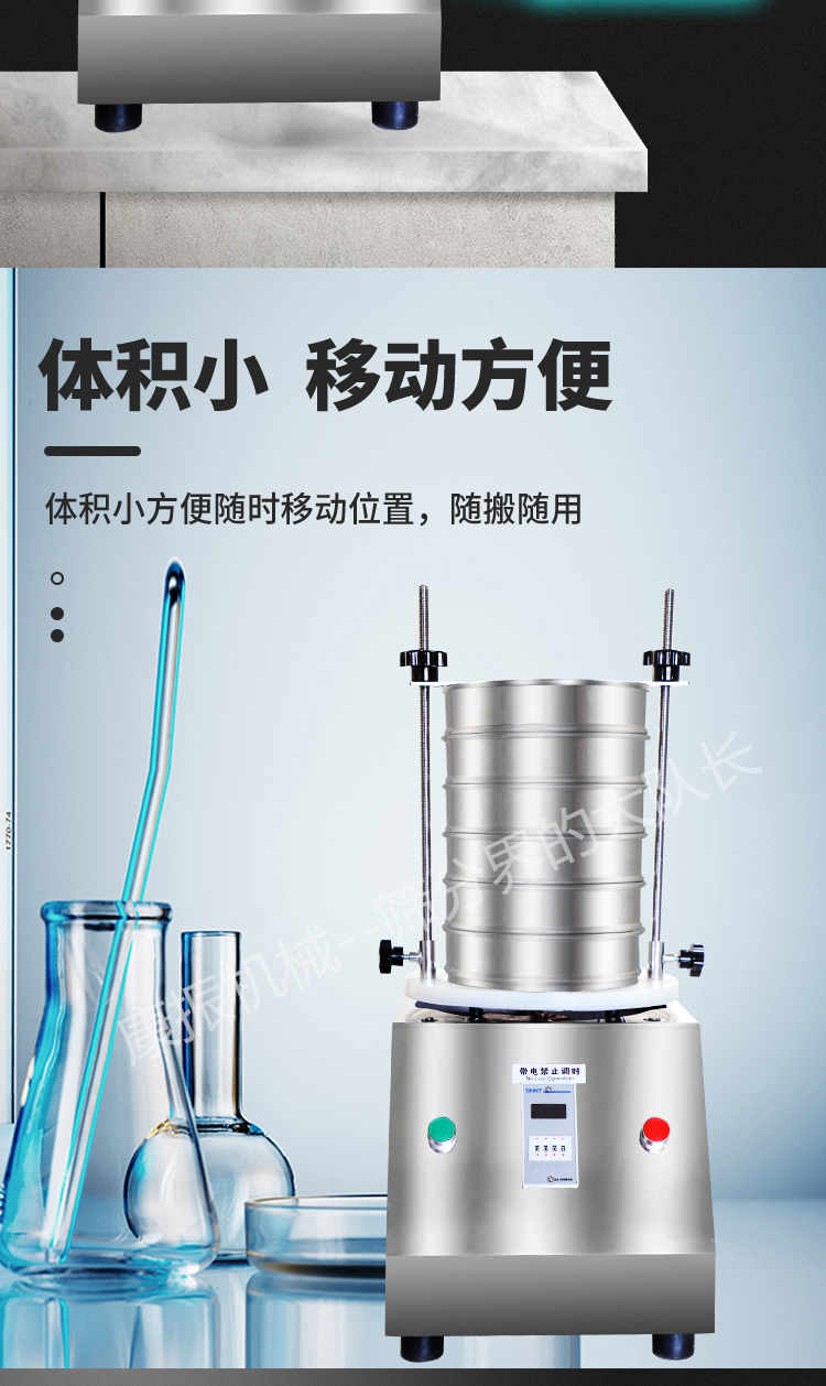 “機(jī)械篩分”將篩子按孔徑大小疊在一起,給料放在頂上一層篩子上,并加上蓋和底盤,一般疊5~6個(gè)篩子。然后放在機(jī)械振篩器上進(jìn)行機(jī)械振動(dòng)篩分。通常,振動(dòng)時(shí)間為20分鐘。檢測(cè)篩分質(zhì)量時(shí),再用振篩器振篩器振篩5分鐘,如每分鐘篩下量小于0.2%試驗(yàn)樣量即為合格,對(duì)于粗粒物料,過(guò)篩率小于1%即可。如篩分過(guò)程中損失量超過(guò)總篩分量的0.5%時(shí),試驗(yàn)必須重新取樣進(jìn)行。為避免損失和延長(zhǎng)篩分時(shí)間,有時(shí)在開始篩分時(shí)先用細(xì)的篩子將粉塵篩除