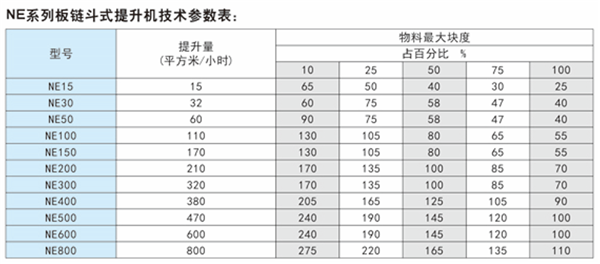 NE系列板鏈斗式提升機是一種新型的斗式提升機,其采用板鏈傳動,區(qū)別于老型號TB系列板鏈斗式提升機,其命名方式采用提升量而命名而非斗寬。如NE150指的是提升量為150噸一小時而不是斗寬150。NE系列斗式提升機有著很高的提升機效率,根據(jù)提升速度不同還分有NSE型號及高速板鏈斗式提升機。